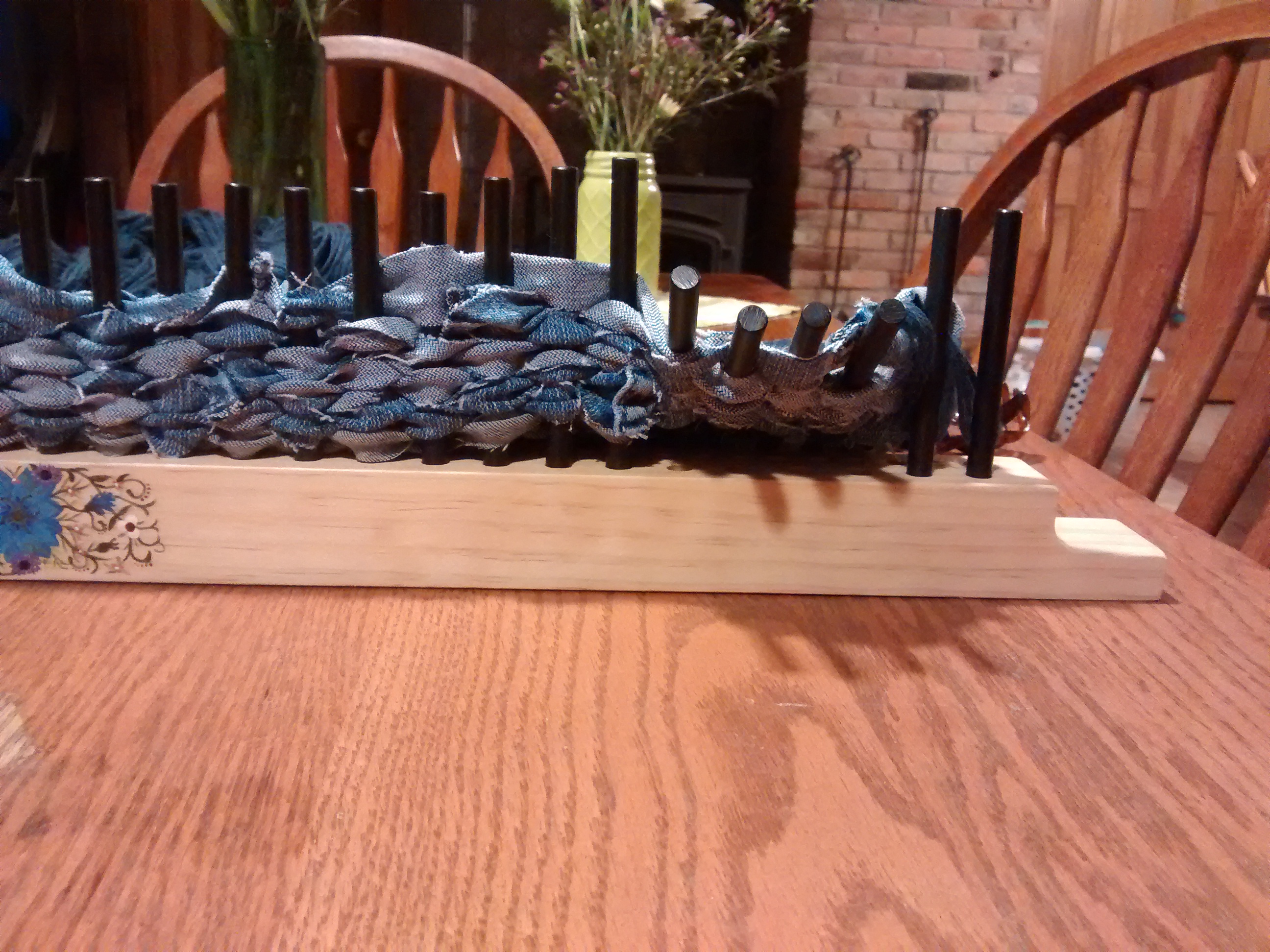 IMG_20160328_193034091 Previous Next Published March 29, 2016 at 2592 × 1944 in PEG LOOM WEAVING: Advancing the Warp Here are four pegs lifted out and just sort of flopping there. Like Loading...